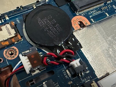 메인보드에 CMOS 전원 공급을 위한 코인 배터리가 장착되어 있다. 부팅, 시간 / 날자 기억 등을 위해 기본적인 전원을 공급해준다고 한다. 노트북을 충전하지 않고 오래 방치하게 되면 이 코인 배터리 또한 방전되는데, 그렇게 되면 노트북이 충전도 되지 않고 전원을 눌러도 반응이 없게 된다. 요즘 노트북도 그런지 모르겠는데 이 노트북은 구형이기도 하고 한동안 방치되어 있어서 배터리가 방전된 것으로 생각된다.